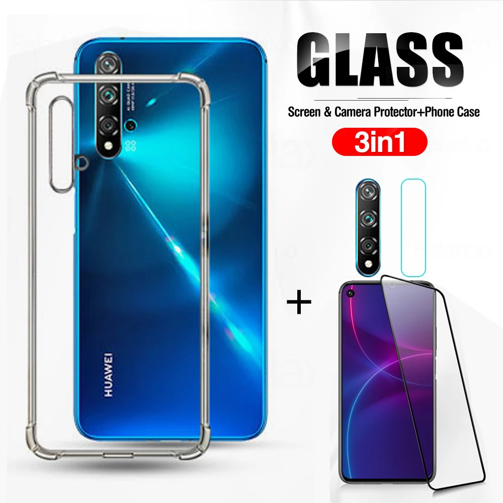 360 3 In 1 Layar Kaca Tempered Hd Kamera Lensa Airbag Kasus Untuk Huawei Nova 5 T Nova5 T Nova5t 5 T Jatuh Handphone Setengah Dibungkus Kasus Aliexpress