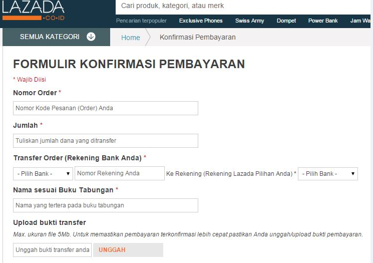Konfirmasi Pembayaran Lazada Setelah Melakukan Transfer Belanja Online