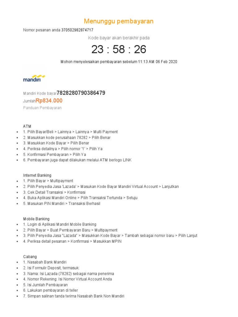 Cara Pembayaran Lazada Via Mandiri Online Lengkap 100 Berhasil