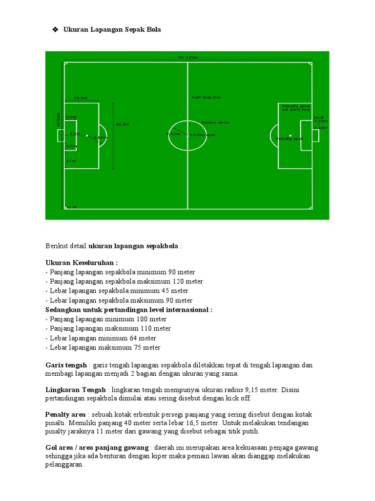 Ukuran Lapangan Sepak Bola Dan Keterangannya Idschool