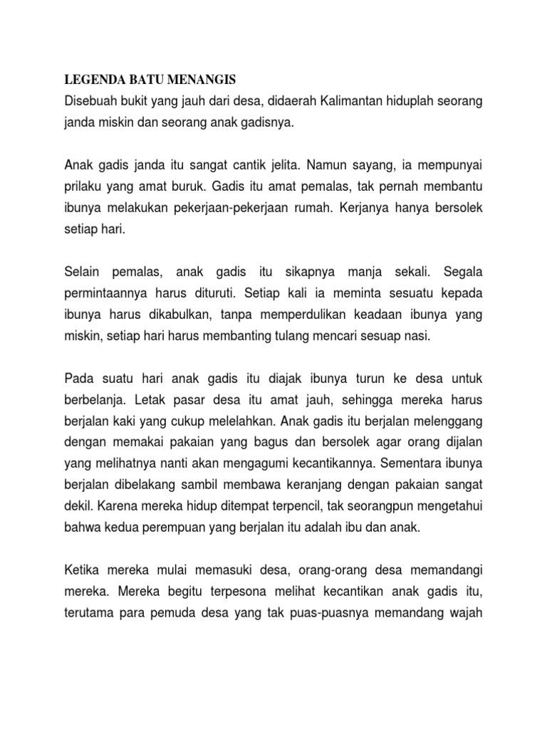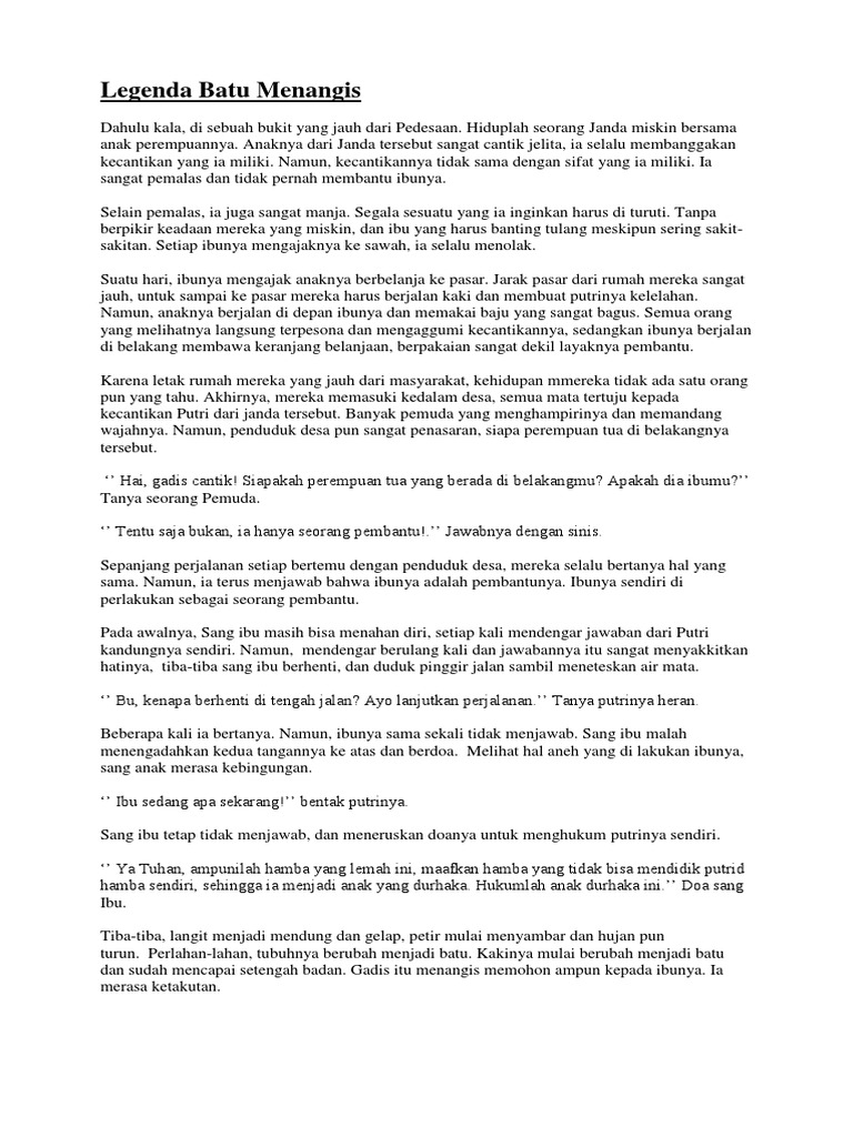 Cerita Legenda Batu Menangis Dalam Bahasa Inggris Rommy House