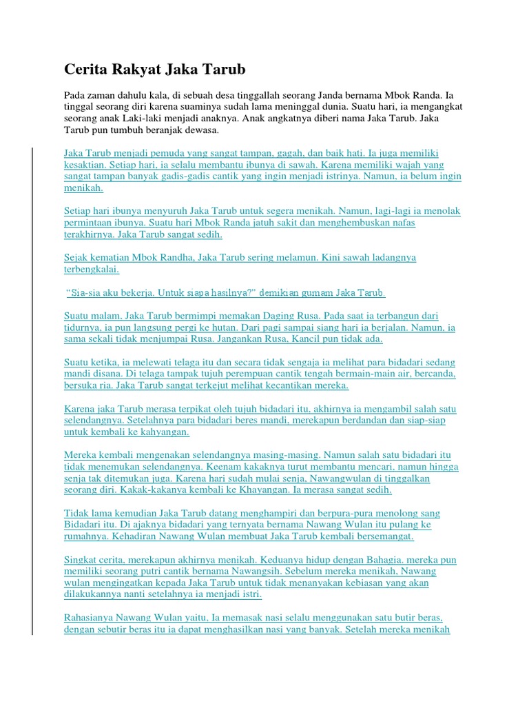 Cerita Rakyat Bahasa Jawa Jaka Tarub Asal Usul Perjalanan Lengkap