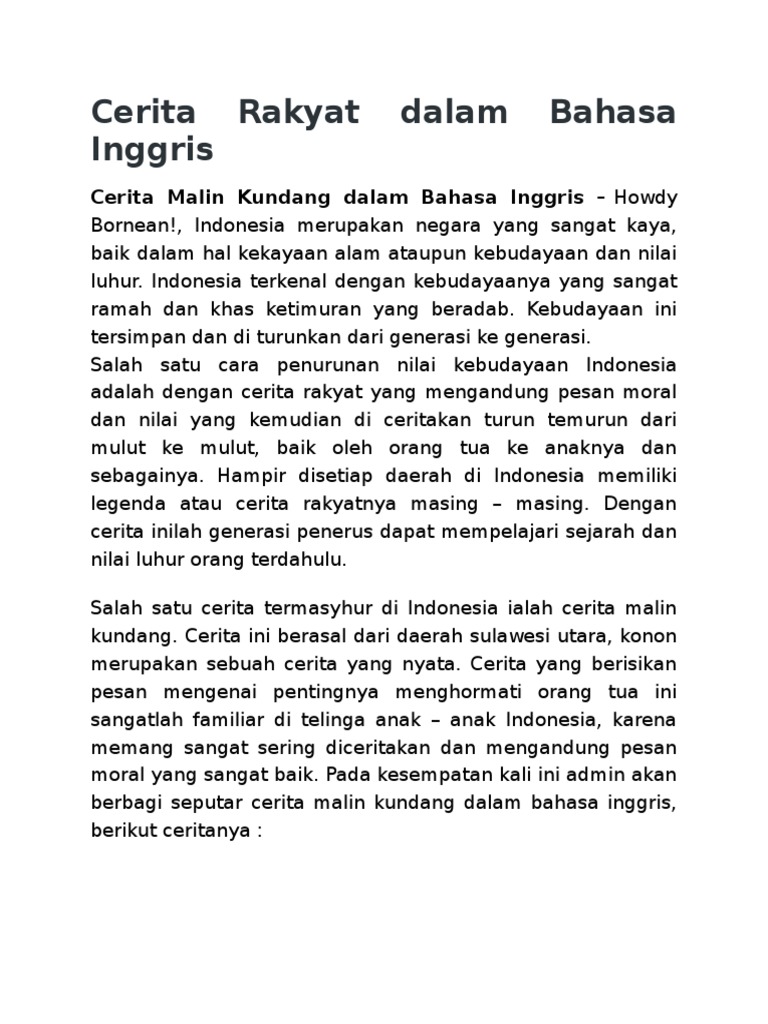 Indonesia Folk Tales Malin Kundang Rubrica Inglese Indonesian Di Lisa Budiharjo