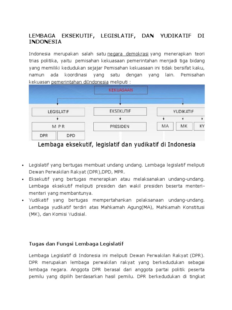 Tugas Dan Wewenang Lembaga Eksekutif Legislatif Dan Yudikatif