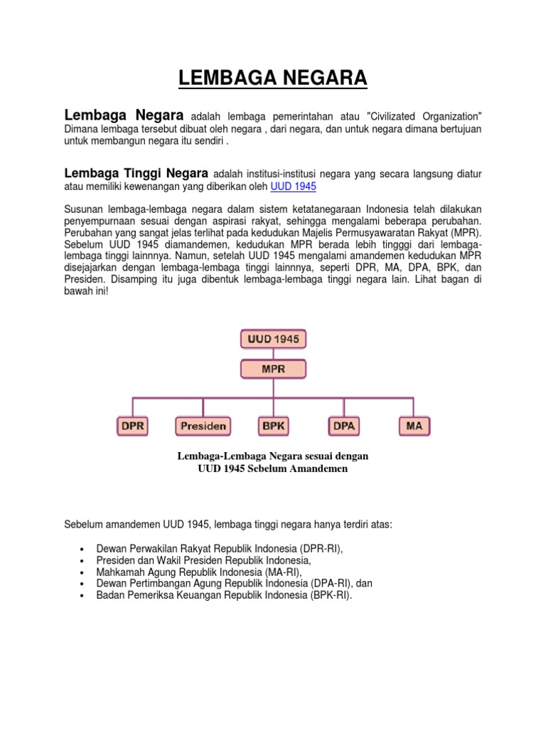 Lembaga Negara Menurut Uud Nri Tahun 1945 Uud