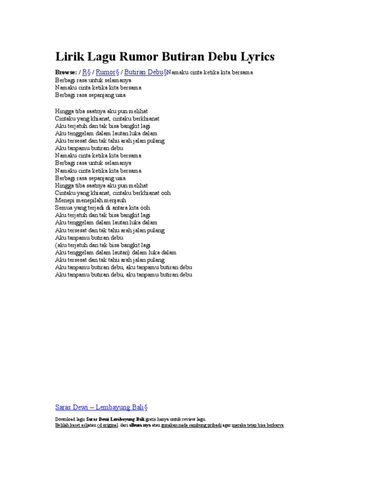 Indonesia Lyrics Music Saras Dewi Lembayung Bali Lyrics