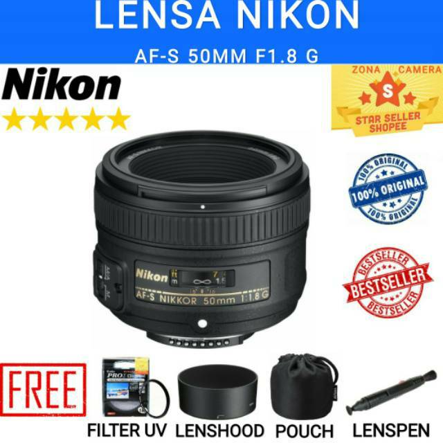 Lensa Fix Nikon Af S 50mm F 1 8g Lensa Kamera Free Filter Uv 58mm Lazada Indonesia
