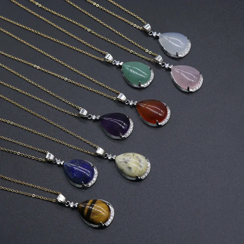 Alam Semi Mulia Kalung Water Drop Kecil Liontin Necklacerose Kuarsa Batu Akik Tigereye Tulang Selangka Rantai Kalung Liontin Kalung Aliexpress