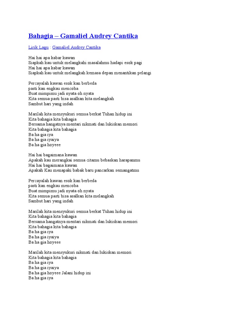 Lirik Lagu Bahagia Gamaliel Audrey Cantika Gac My Top Song Lyrics