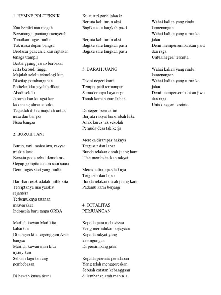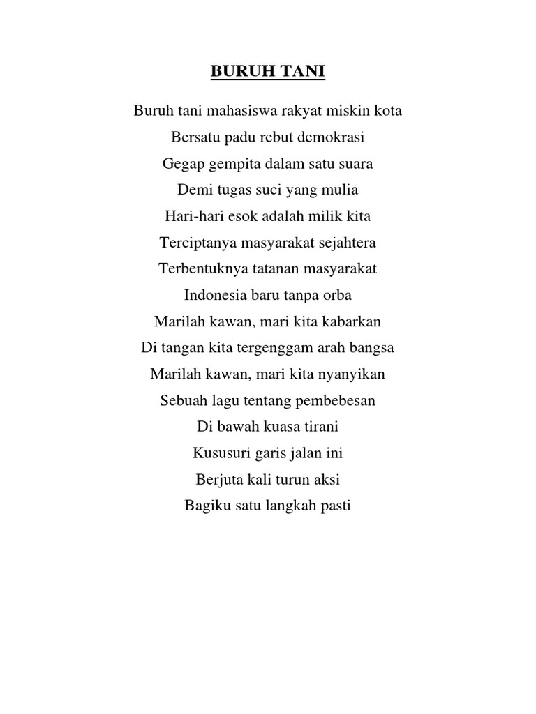 Lirik Buruh Tani Dan Darah Juang Lagu Wajib Parlemen Jalanan Setia Fakta