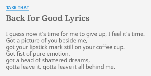 Back For Good Lyrics By Take That I Guess Now It S