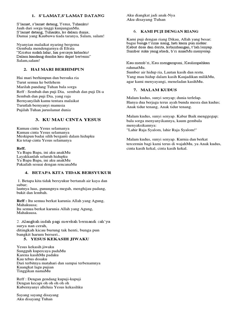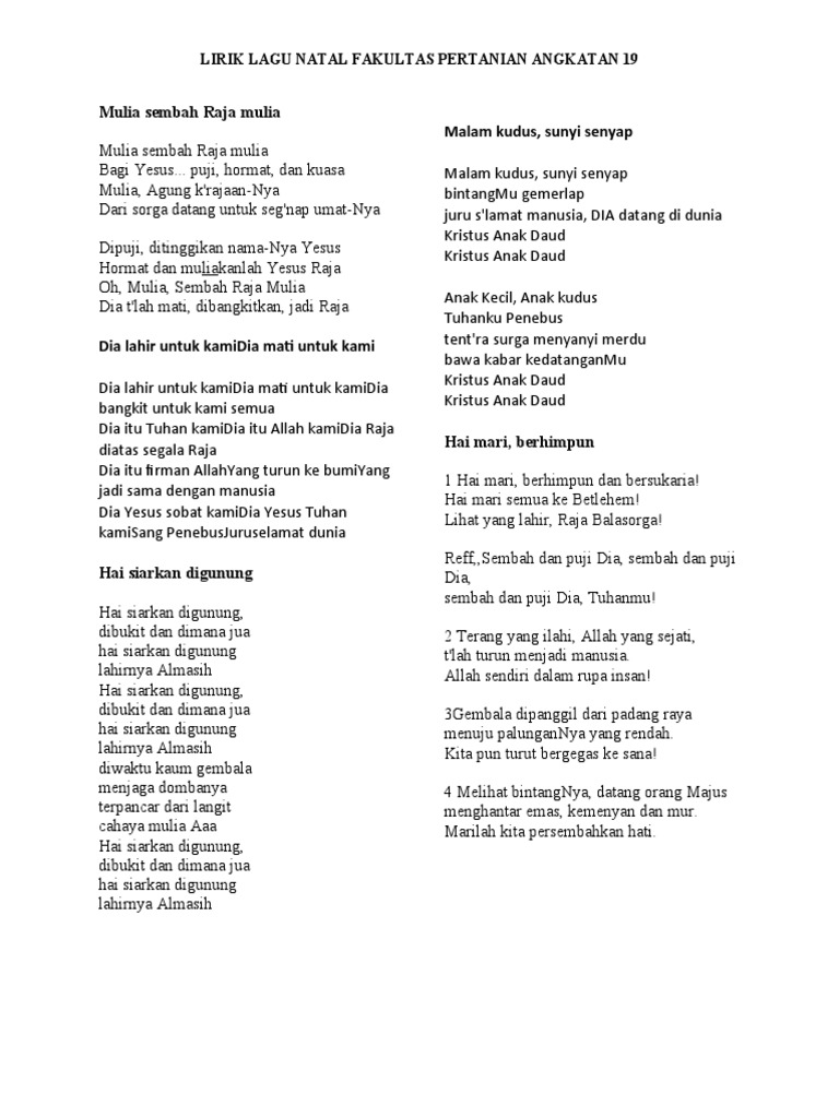 Lirik Lagu Natal Hai Mari Berhimpun Sigodang Pos