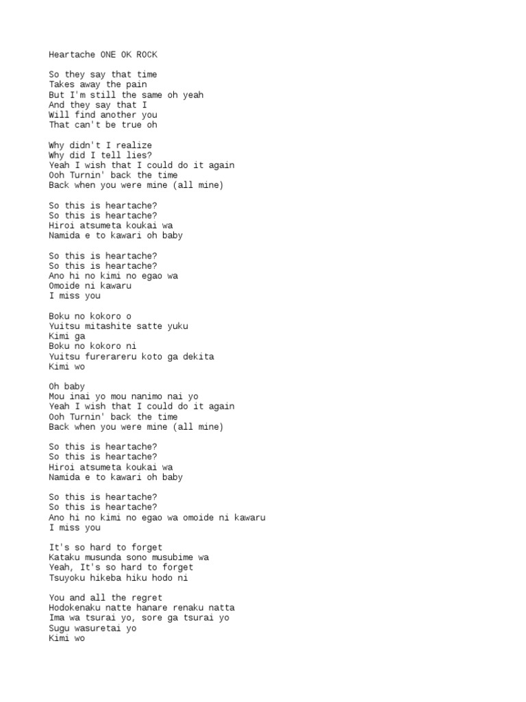 Japanese Song S Lyrics One Ok Rock Heartache Wattpad