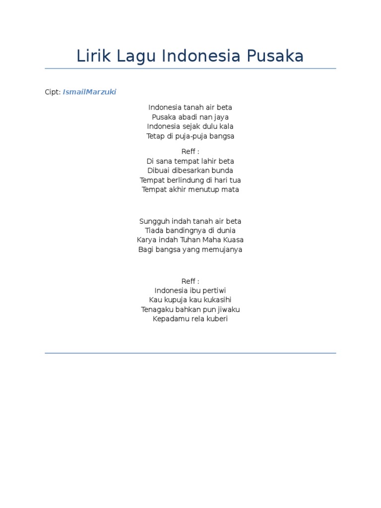 Indonesia Pusaka Lyrics By Lagu Wajib Nasional Original Song Full Text Official Indonesia Pusaka Lyrics 2021 Version Lyricsmode Com