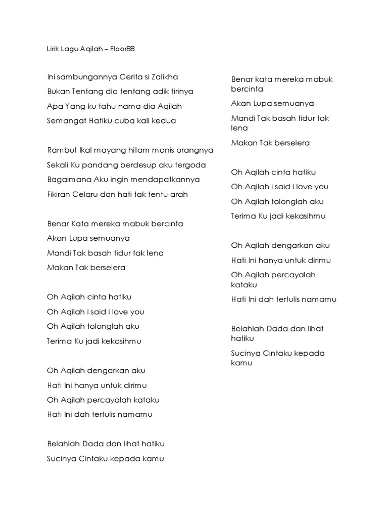 Kumpulan Lirik Lagu Kali Kedua Wattpad