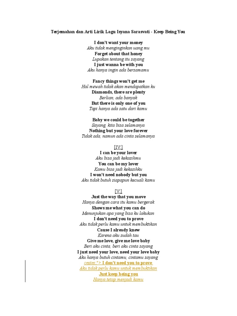 Lirik Lagu Keep Being You Isyana Sarasvati I Don T Want Your Money Forget About That Honey Tribunjogja Com