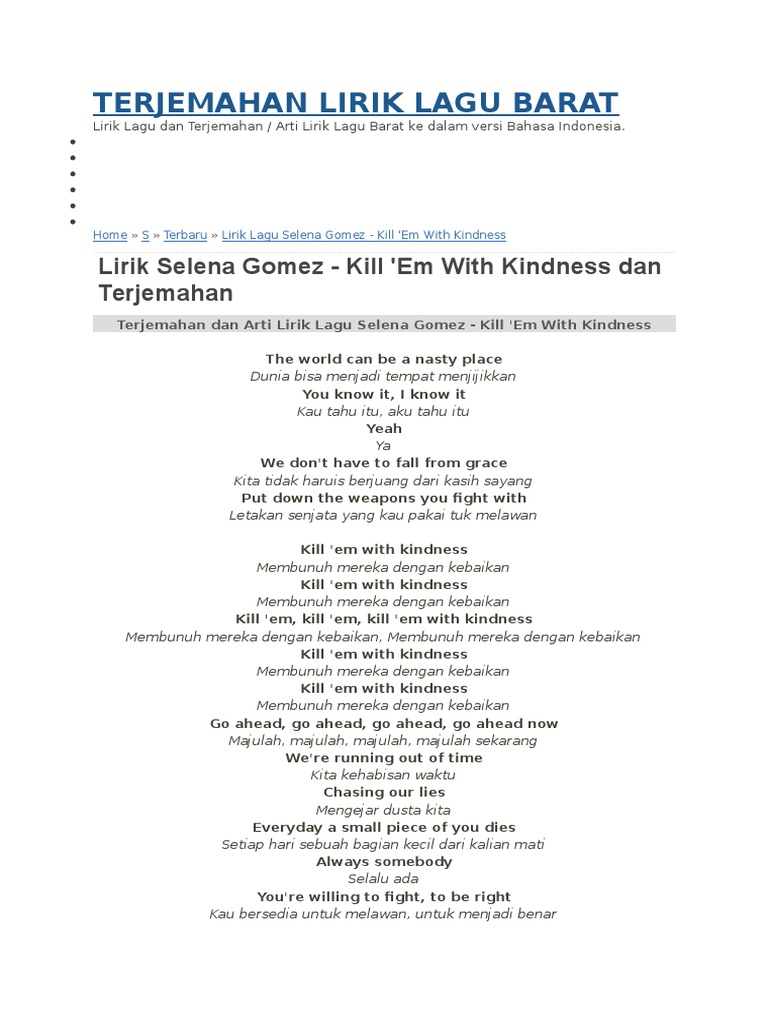 Teks Lagu Kill Em With Kindness Berbagai Teks Penting