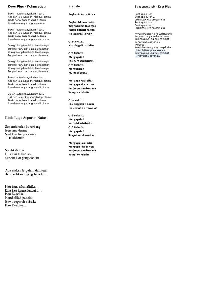 Lirik Chord Koes Plus Kolam Susu Musikae