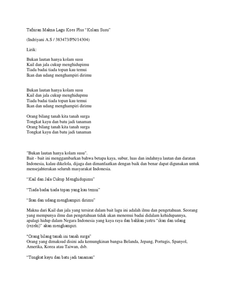 Lirik Lagu Kolam Susu Koes Plus Diadona Id