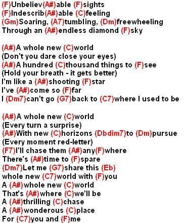 A Whole New World Lyrics I Can Show You The World Aladdin Disney Lyrics Disney Song Lyrics Lyrics