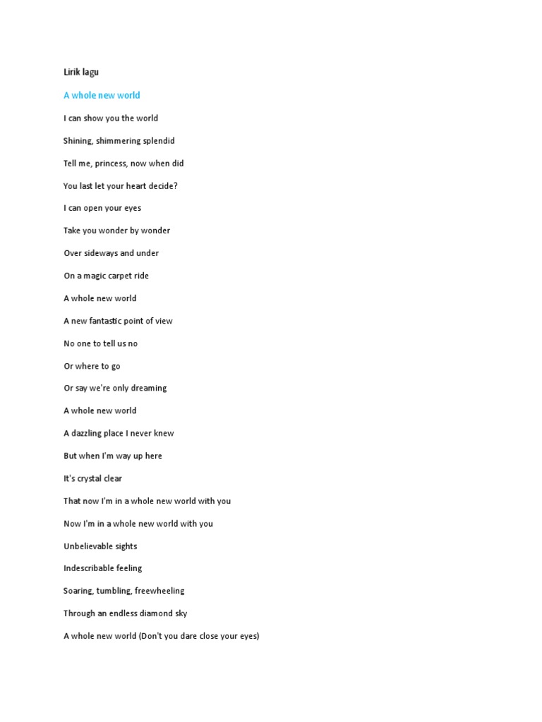 Lirik Lagu A Whole New World Dan Terjemahan Lirik Lagu Dunia
