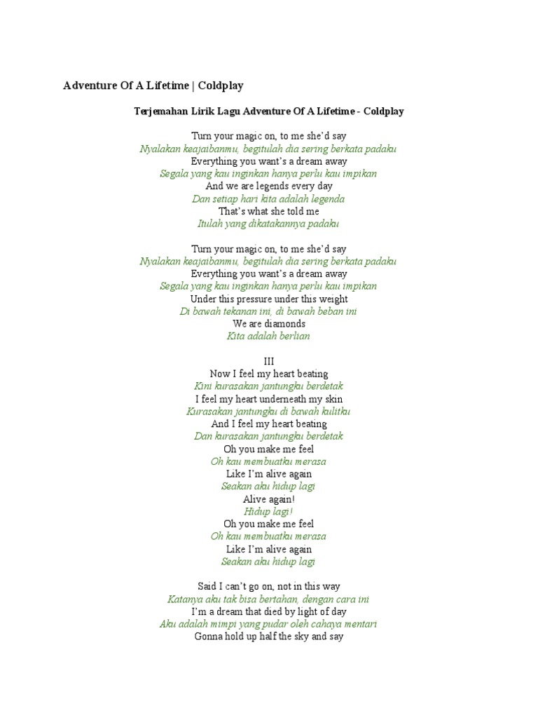 Lirik Lagu Adventure Of A Lifetime Coldplay Turn Your Magic On Umi She D Say Everything You Want S Tribunjogja Com