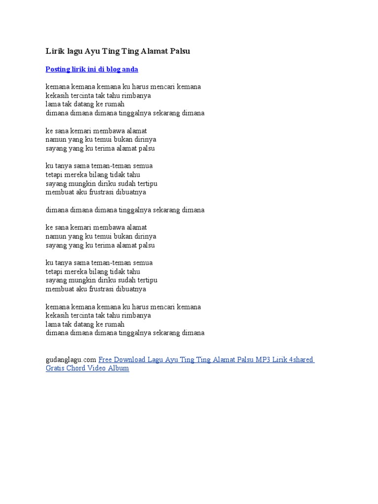 Lirik Lagu Lirik Lagu Ayu Ting Ting Alamat Palsu Jateng Co