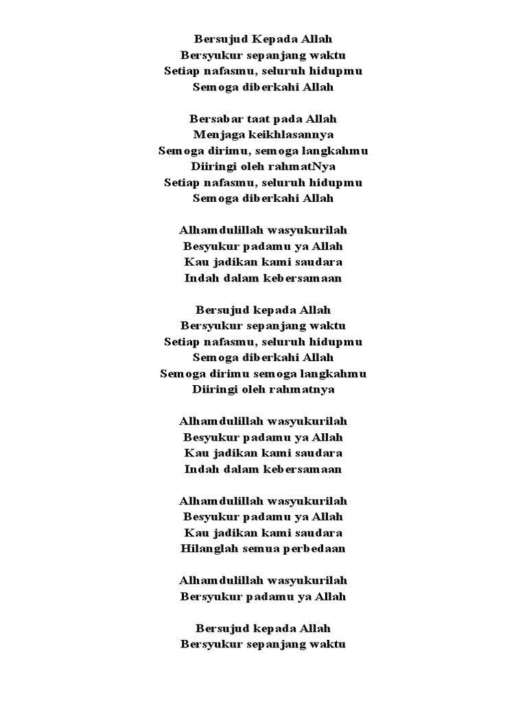 Lirik Teks Alhamdulillah Was Sykurulillah Arab Dan Latin