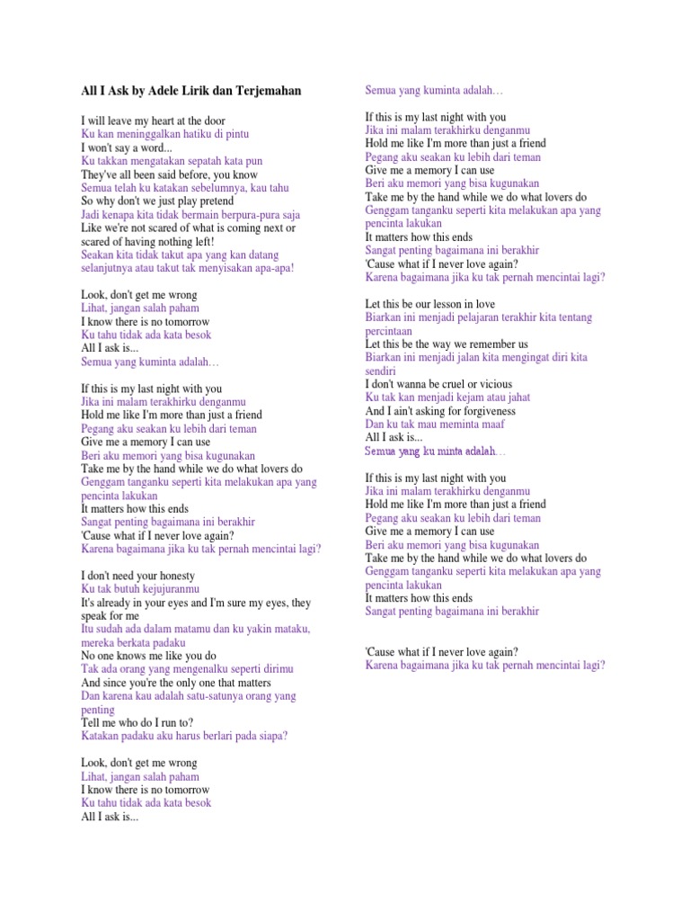 Teks Lagu All I Ask Dan Terjemahannya Berbagai Teks Penting