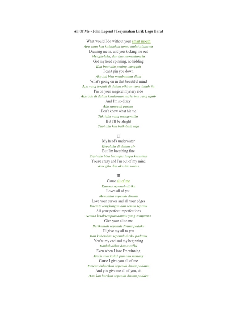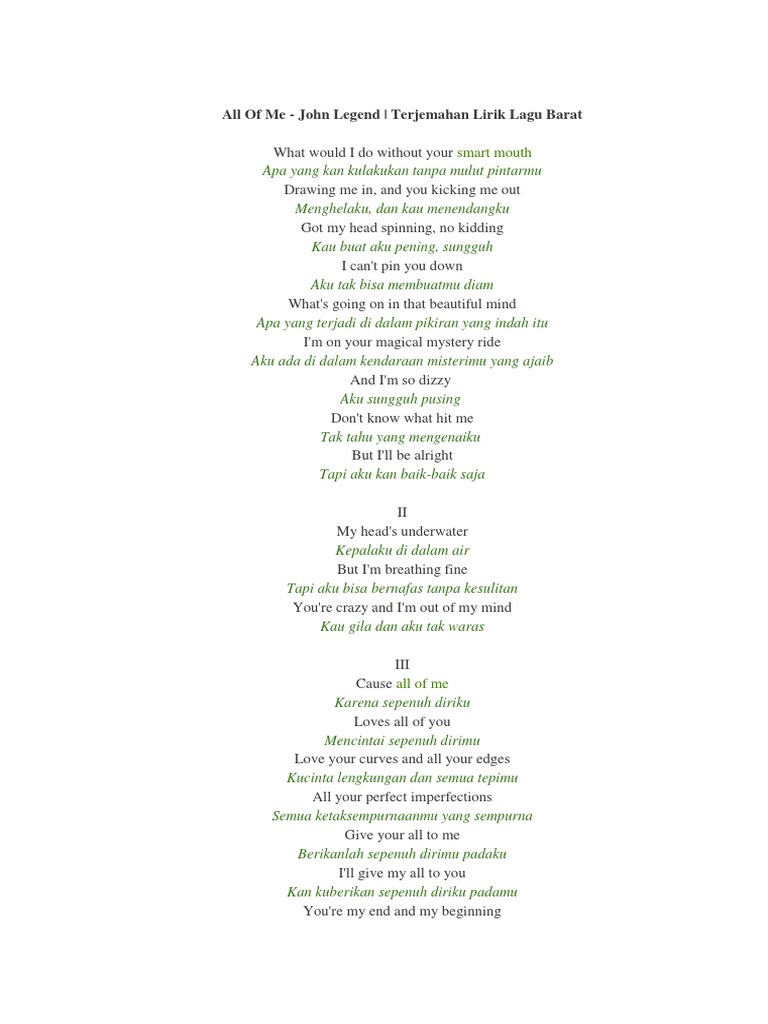 Terjemahan Lirik Lagu Terbaru Makna Dan Arti Terjemahan Lirik Lagu All Of Me John Legend