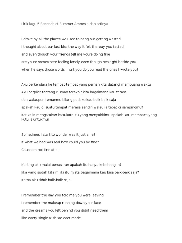 Amnesia 5 Seconds Of Summer Terjemahan Lirik Lagu Barat Song Lyric Translation Vlr0jx5j7zlz