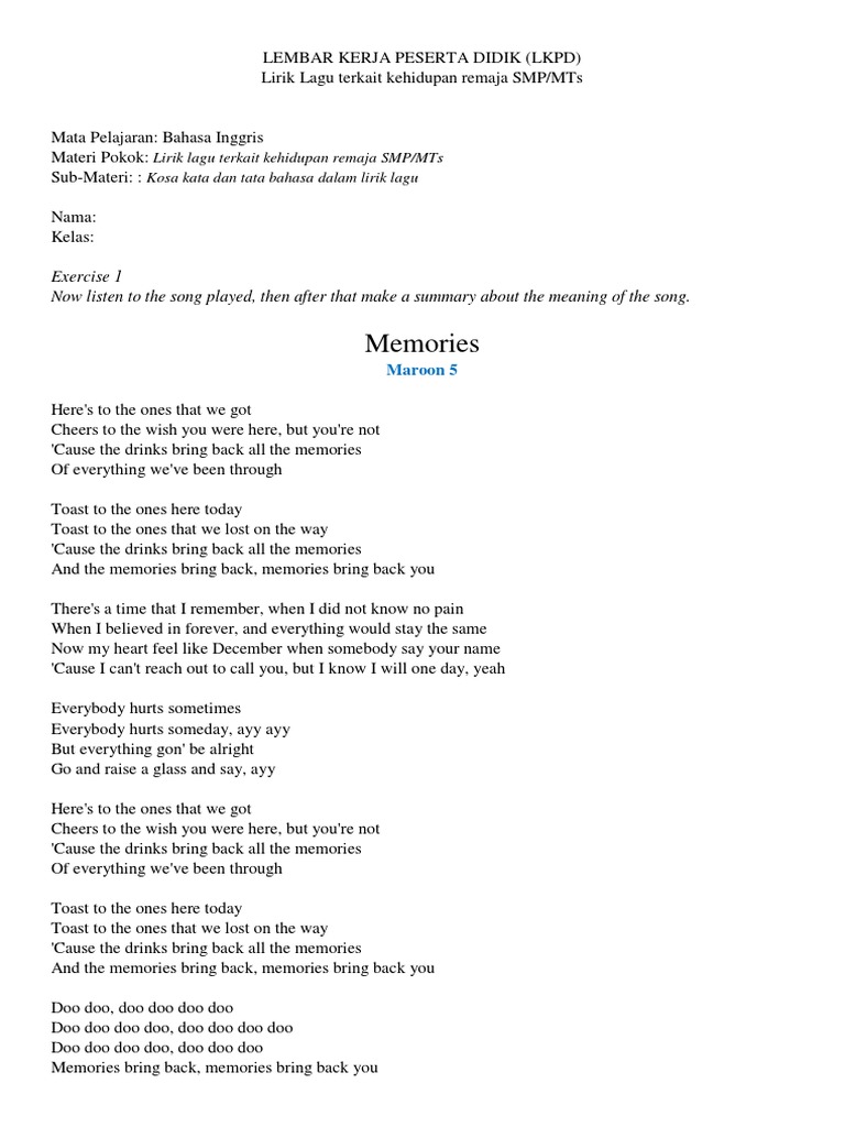 Lirik Lagu Memories Kumpulan Lirik Lagu Dan Chord Terbaru Dan Terupdate Dari Mancanegara