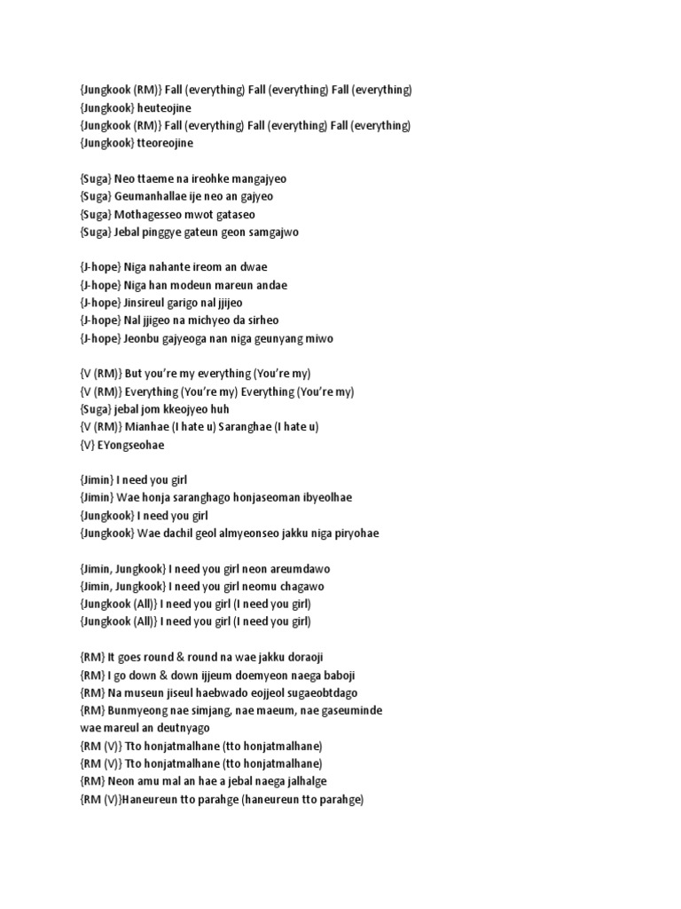 Bts Song Lyrics Rom Indo Trans I Need U Wattpad
