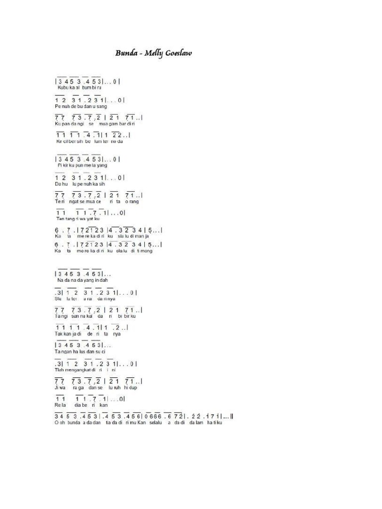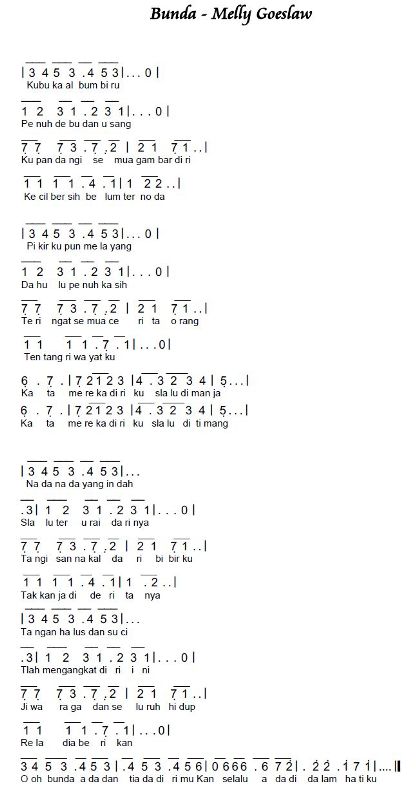 Not Angka Lagu Bunda By Melly Goeslaw Kumpulan Not Lagu