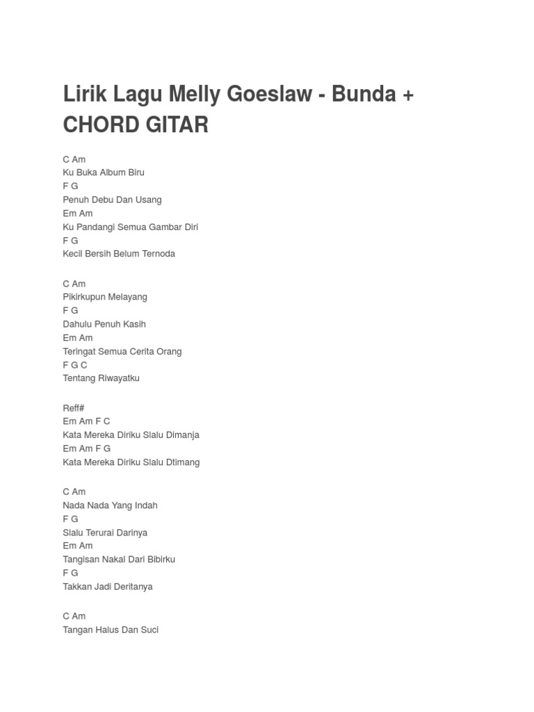 Lirik Lagu Dan Kunci Gitar Bunda Docx Document