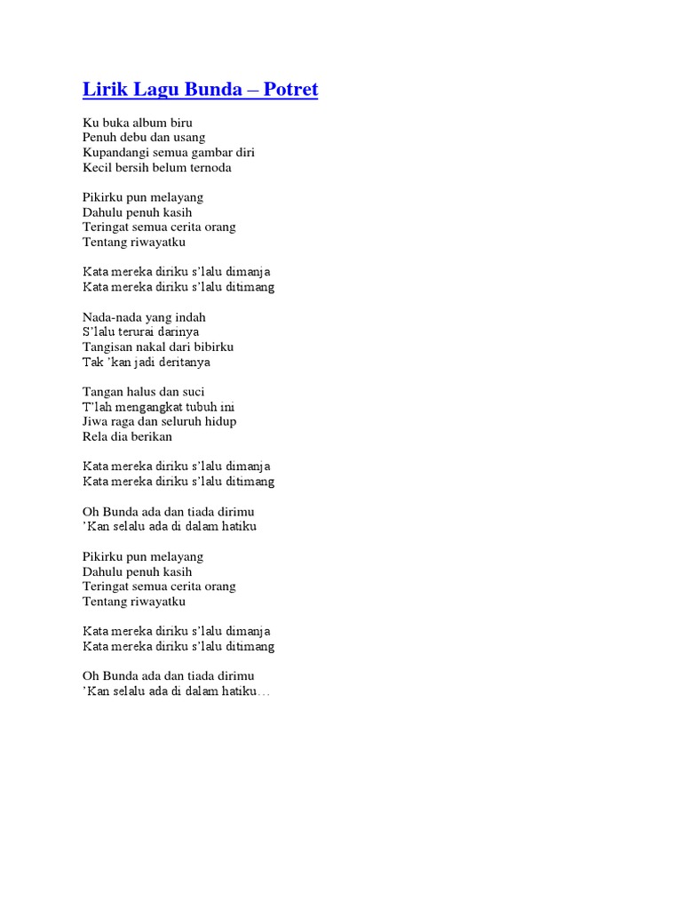 Lirik Lagu Bunda Milik Potret Lengkap Dengan Video Klipnya Sonora Id