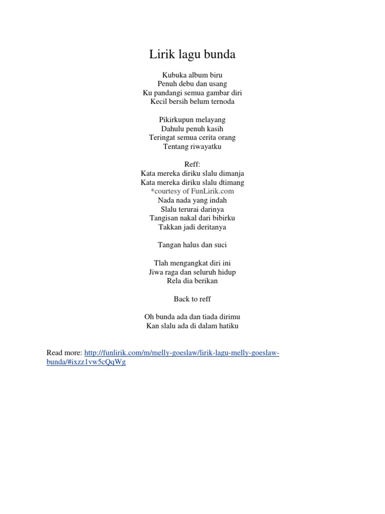 Lirik Lagu Bunda Melly Goeslaw Pianika Lirik Laku Kenangan