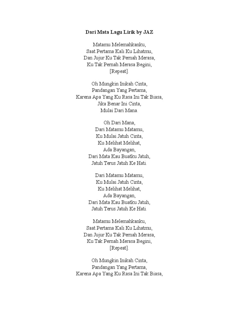 Lirik Lagu Dari Mata Jaz Diadona Id