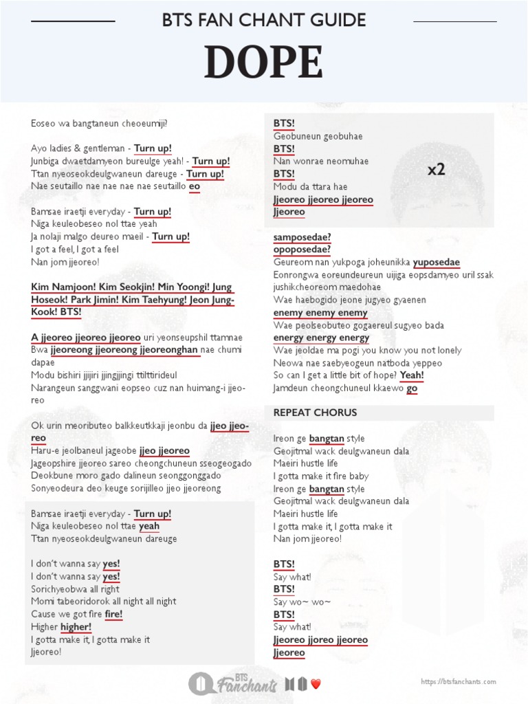 Official Bts Fanchant For Dope Ì©ì´ Interactive Lyrics Chant