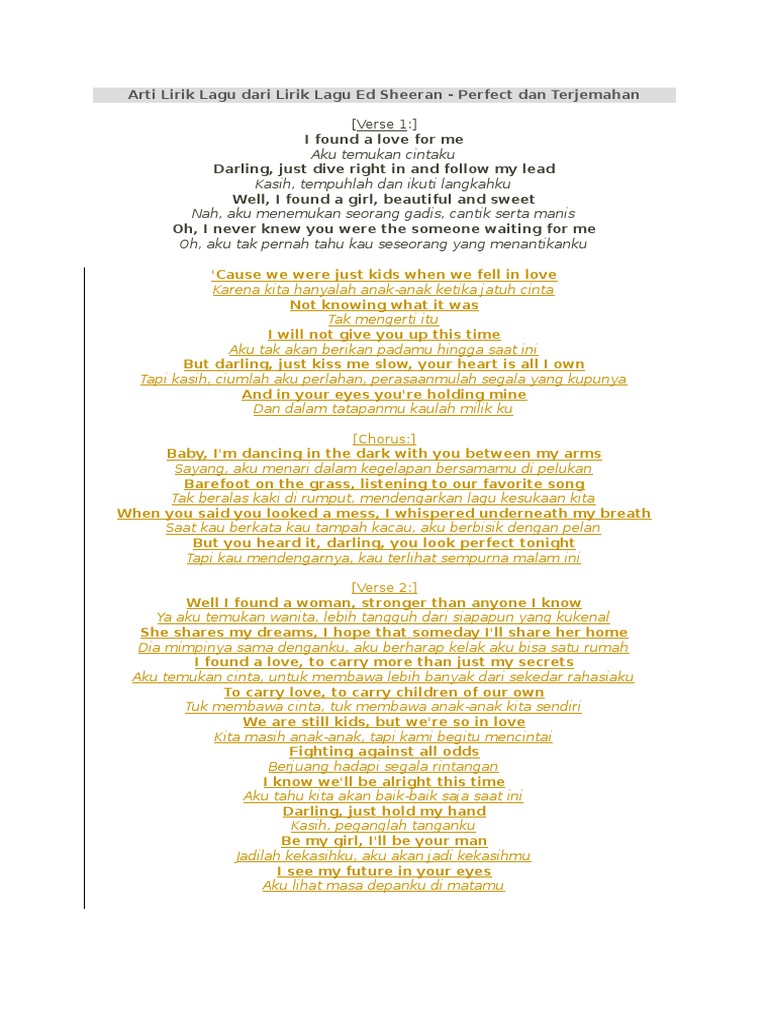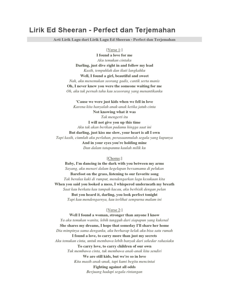 Lirik Lagu Ed Sheeran 41 Perfect Wattpad