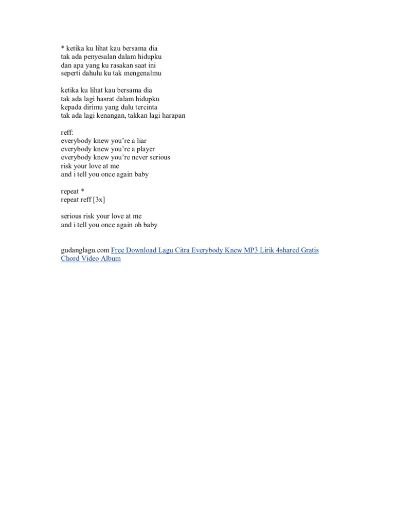 Rizki Dharmawan On Twitter Lirik Lagu Citra Idol Everybody Knew Lyrics Lirik Lagu Lyrics Mp3 Download Kord Chord Http T Co Onljtg5