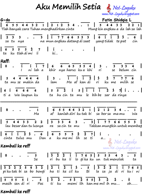 Not Angka Lagu Aku Memilih Setia Fatin Shidqia Lubis Piano Pianika Guru Musik