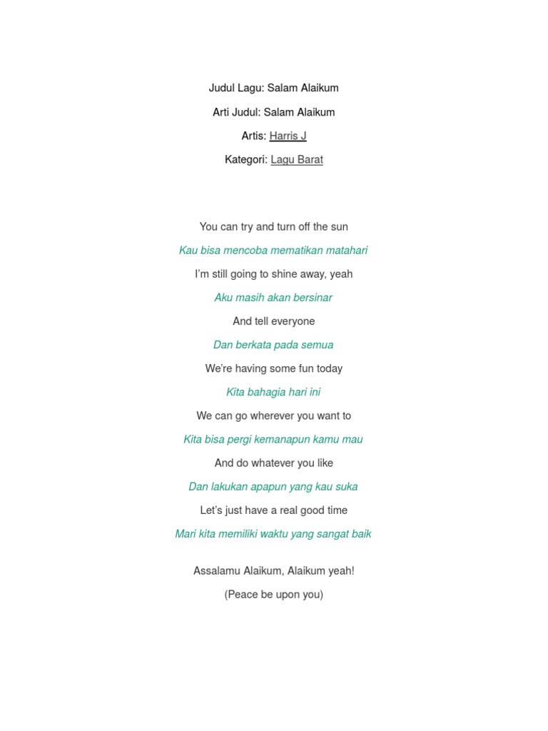 Terjemahan Lirik Lagu Terbaru Makna Dan Arti Terjemahan Lirik Lagu Salam Alaikum Harris J