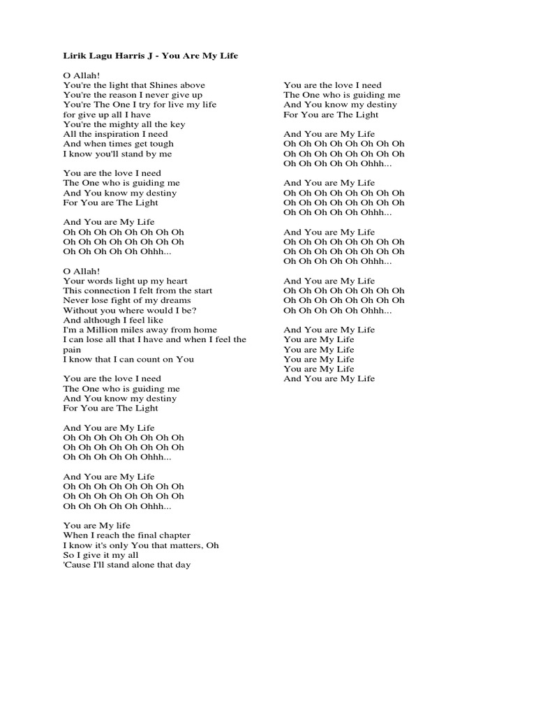 Lirik Lagu Harris J You Are My Life Lyrics Lirik Lagu Dunia