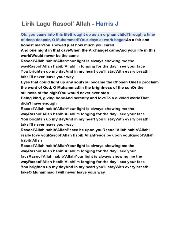Lirik Lagu Harris J Salam Alaikum Wattpad