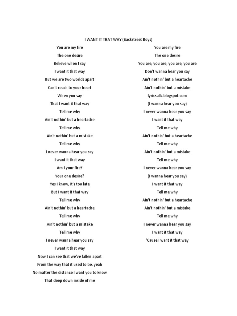 Teks Lagu I Want It That Way Berbagai Teks Penting