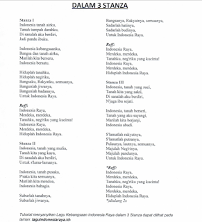 Lagu Indonesia Raya Stanza 1 Stanza 2 Dan Stanza 3 Berbagi Ilmu