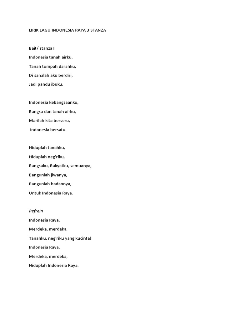Lirik Lagu Indonesia Raya 3 Stanza Lirik Lagu Dunia