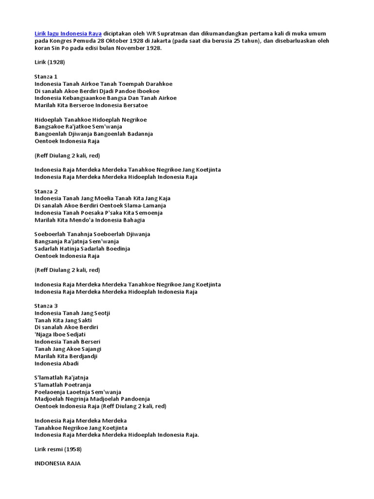 Ini Naskah Lyric Lagu Kebangsaan Indonesia Raya 3 Stanza Bait Kaskus