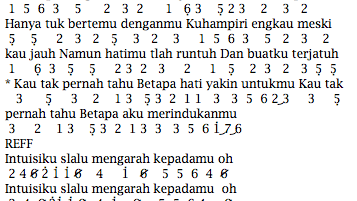 Not Angka Lagunya Yura Yunita Intuisi Dunia Lirik Not Lagu